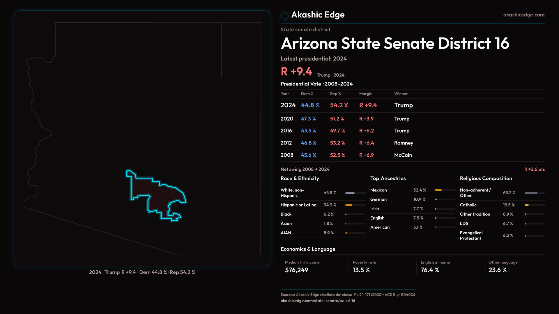 Who lives in Arizona State Senate District 16? 236,940 residents as of the 2020 Census.