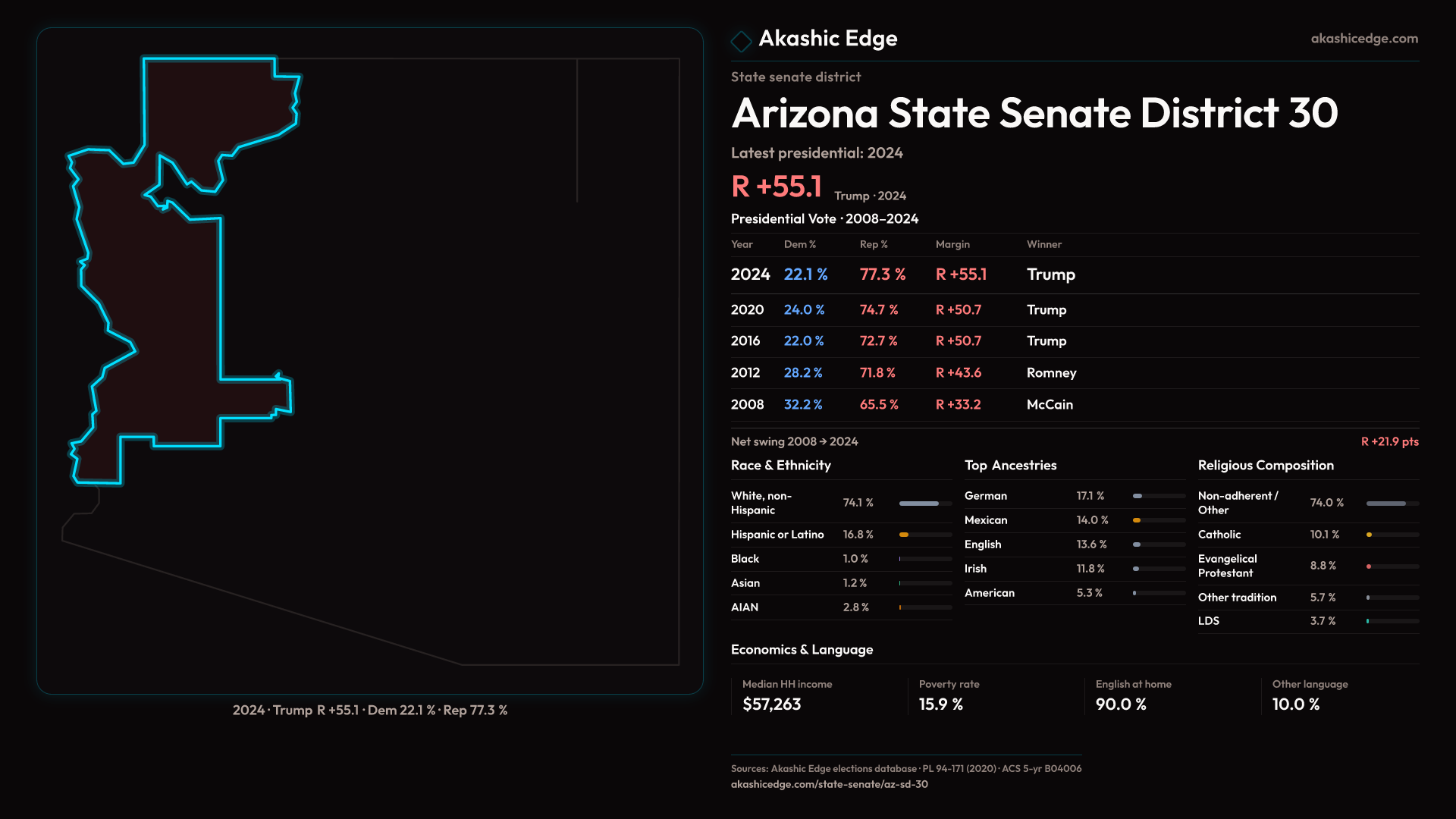 Who lives in Arizona State Senate District 30? 237,851 residents as of the 2020 Census.