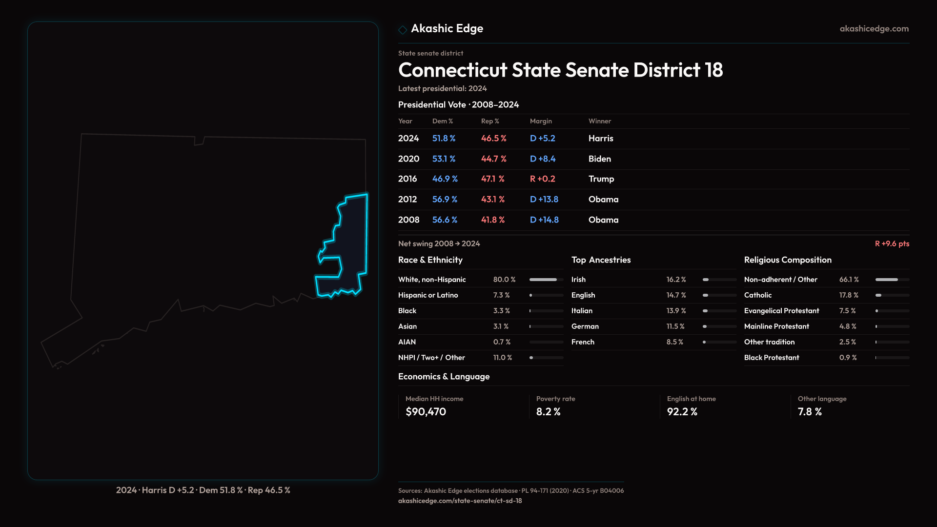 Who lives in Connecticut State Senate District 18? 99,206 residents as of the 2020 Census.