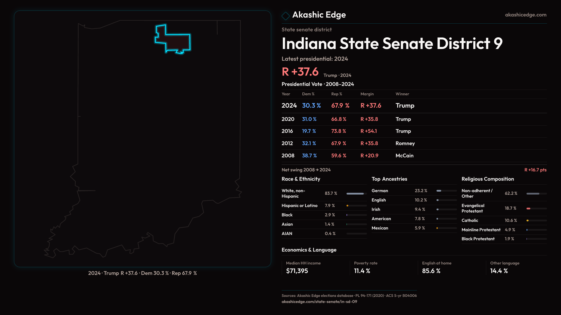 Read this geography's profile in three layers: local, state (where available), and national baseline.