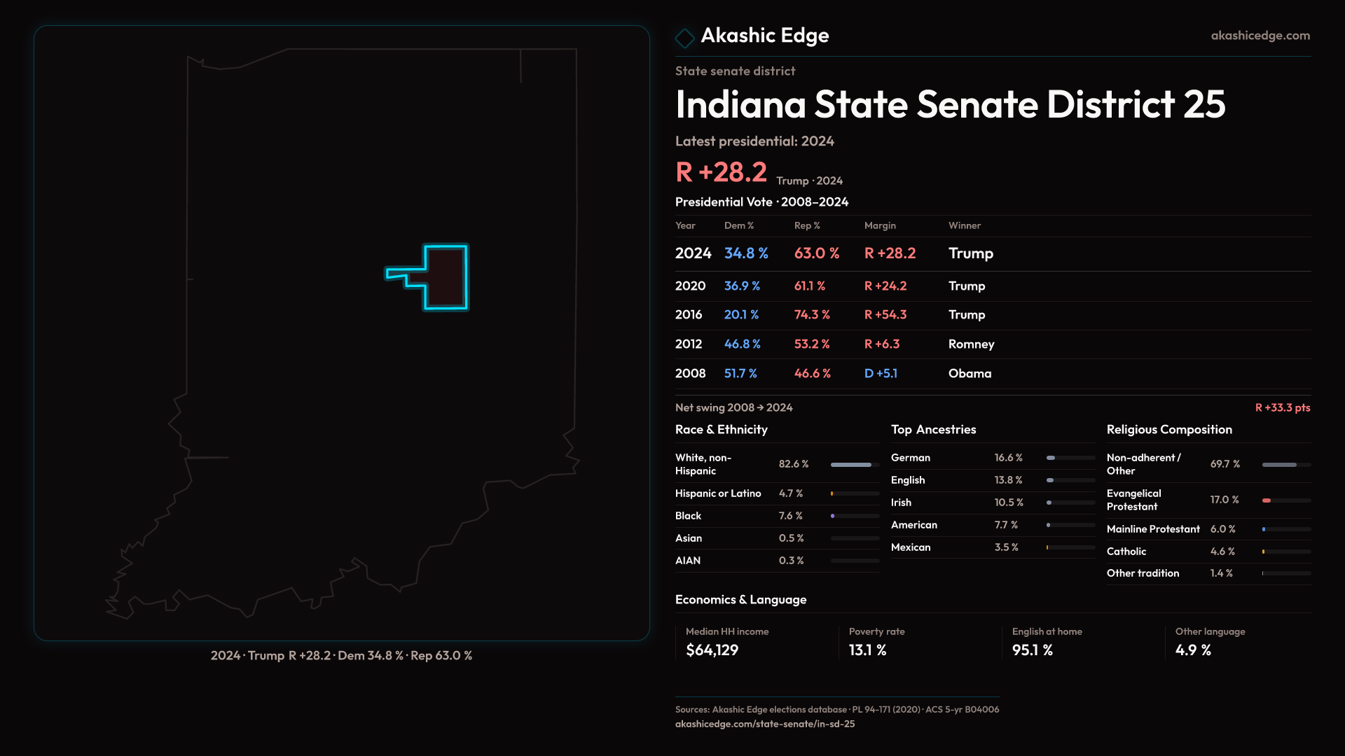 Safe Republican — shifted 4.0pp toward Republicans in 2024 — 135K residents