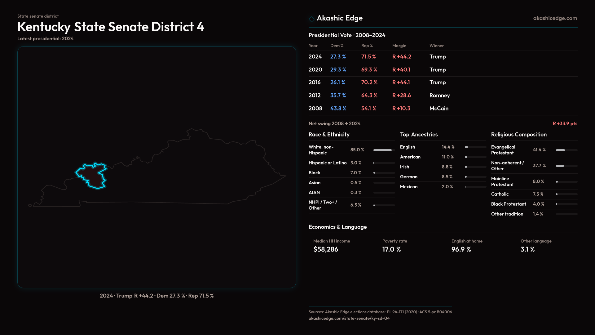 Who lives in Kentucky State Senate District 4? 116,901 residents as of the 2020 Census.