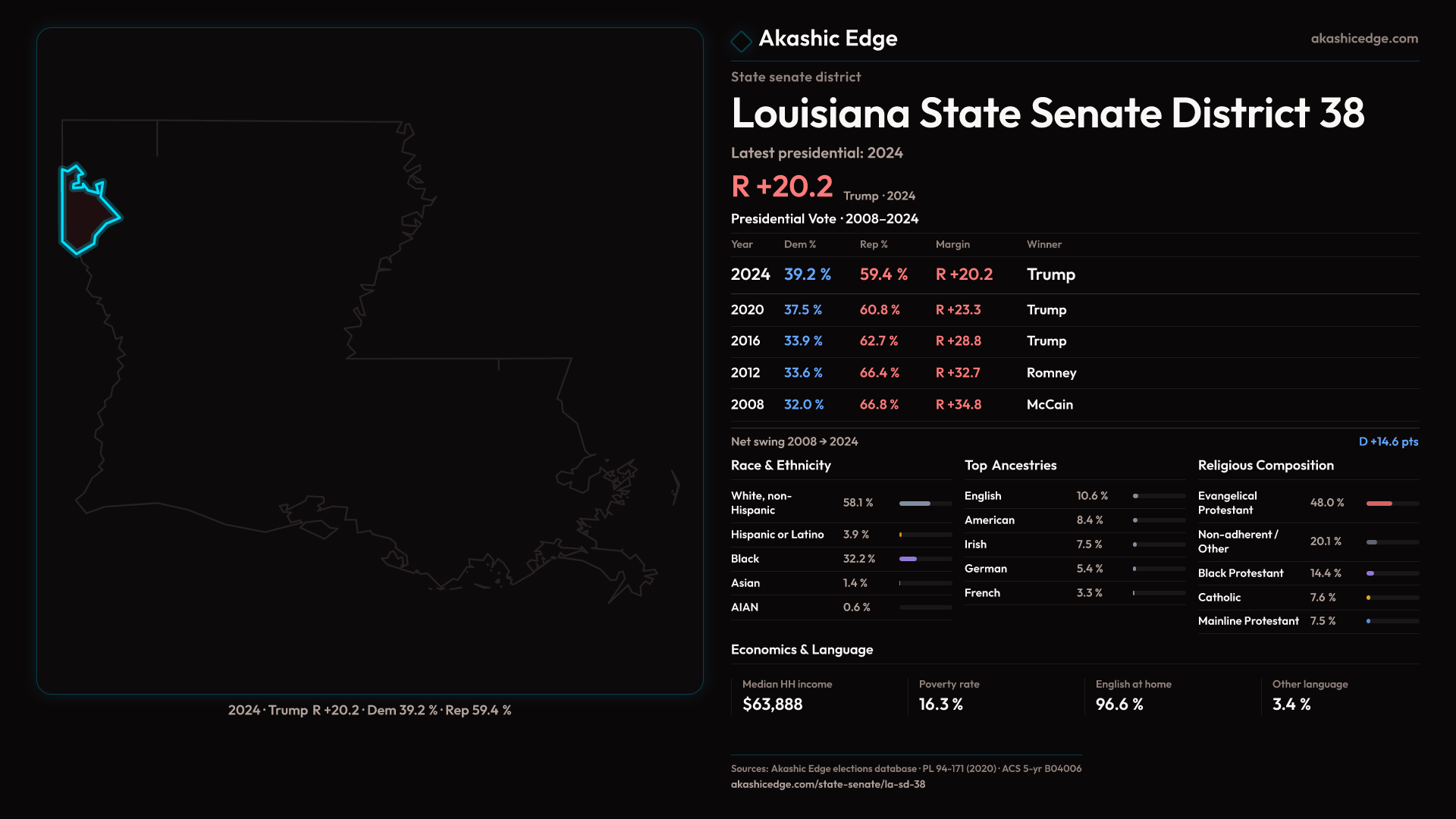 Read this geography's profile in three layers: local, state (where available), and national baseline.