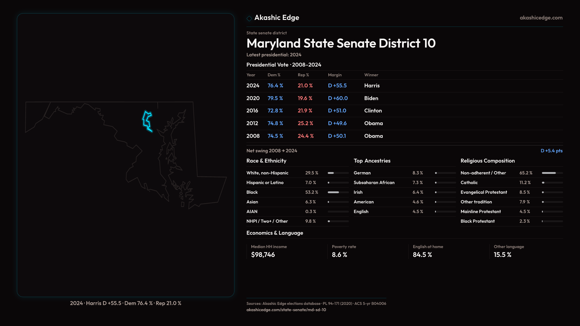Who lives in Maryland State Senate District 10? 125,835 residents as of the 2020 Census.