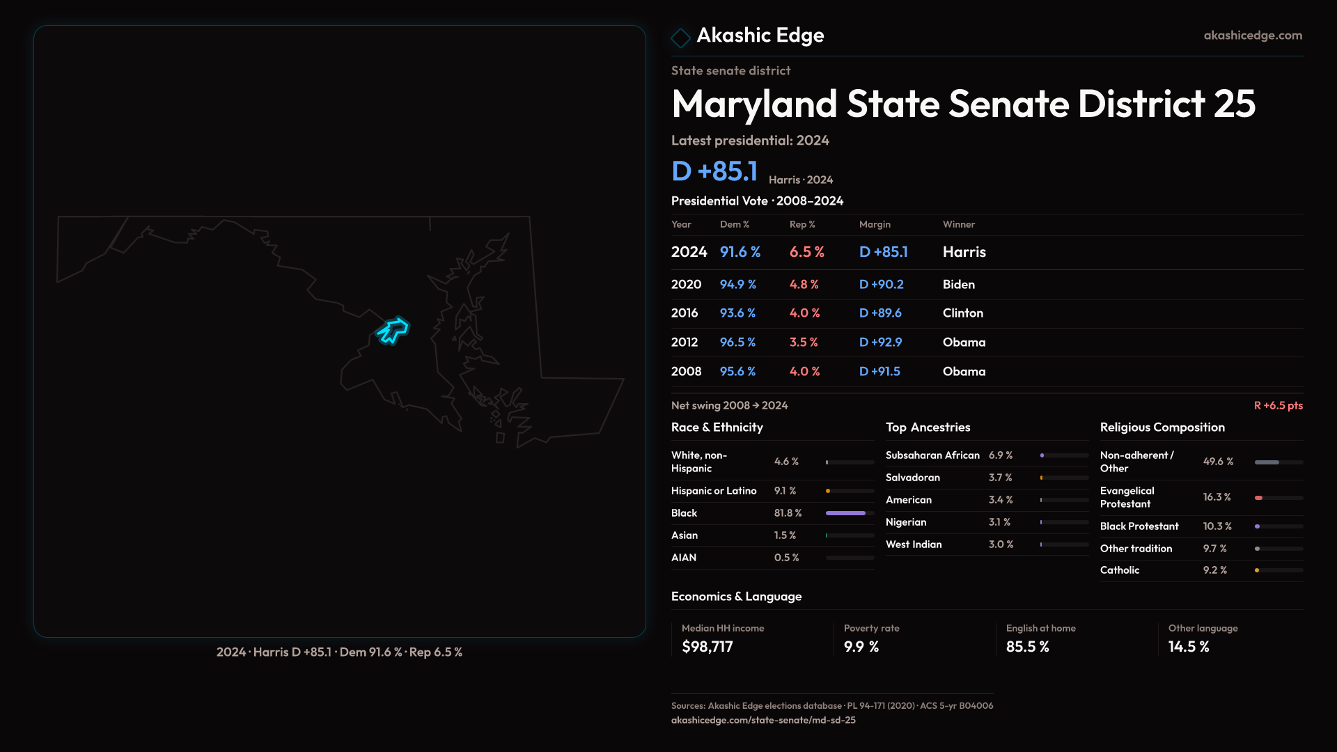 Who lives in Maryland State Senate District 25? 135,779 residents as of the 2020 Census.