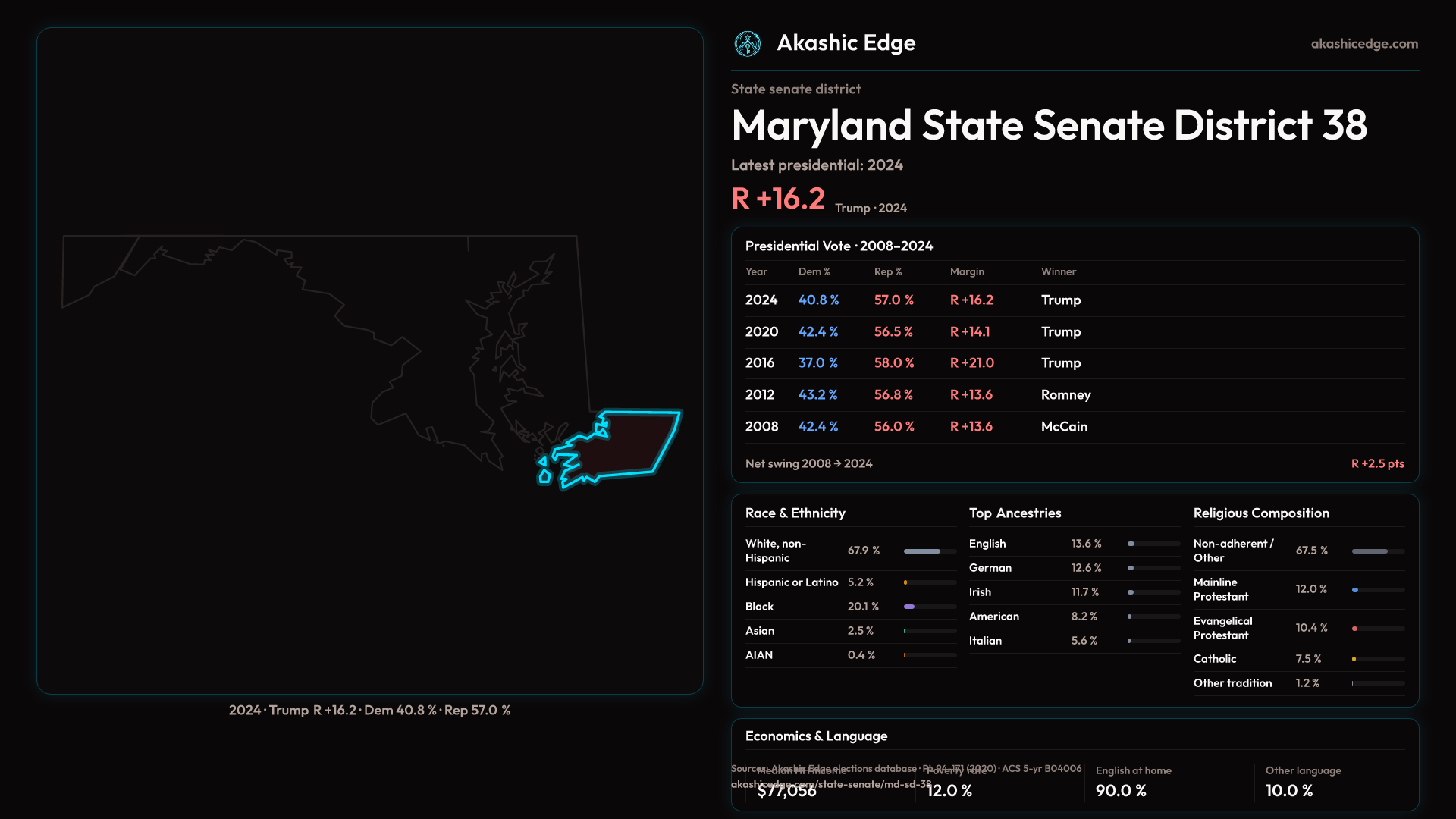 Who lives in Maryland State Senate District 38? 136,653 residents as of the 2020 Census.