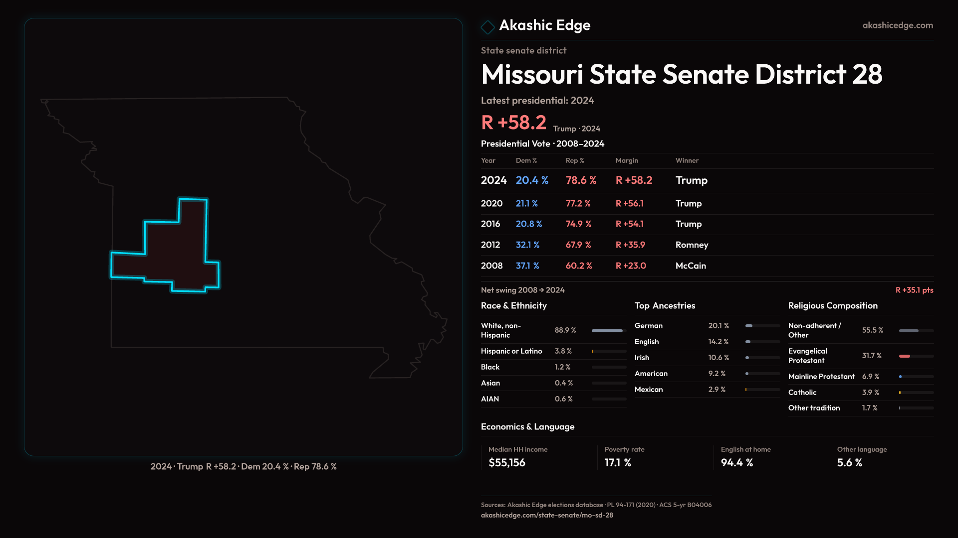 Safe RAvg margin: R+56.1 (last 3 elections)