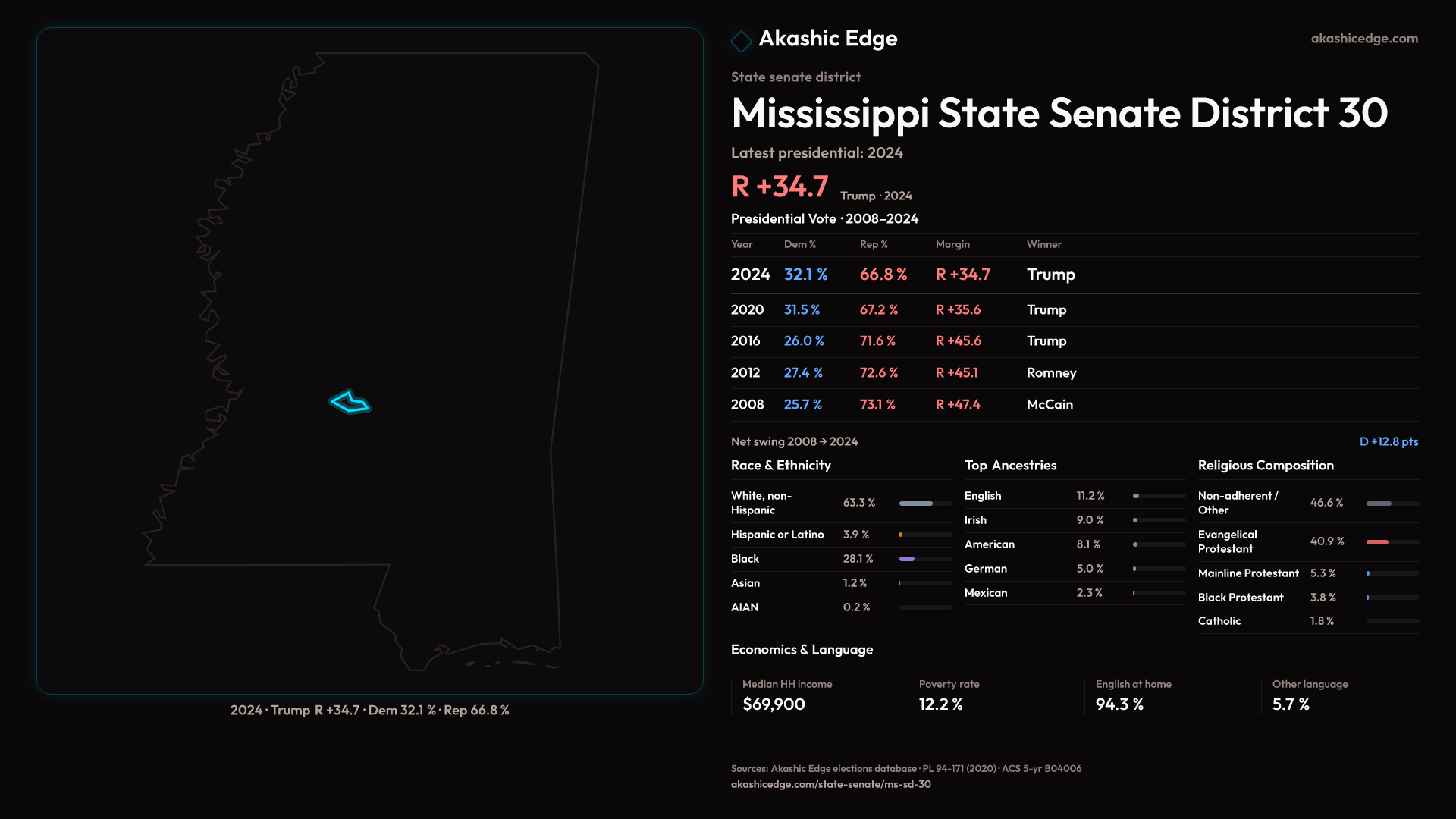 Read this geography's profile in three layers: local, state (where available), and national baseline.