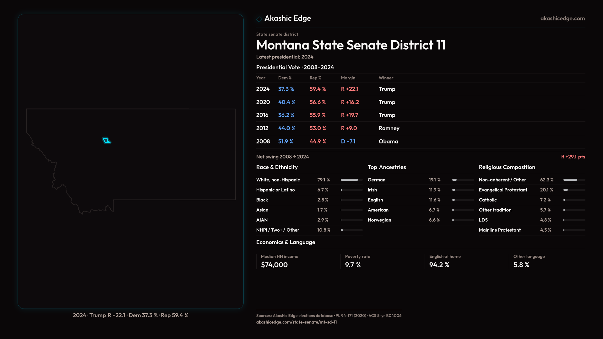 Who lives in Montana State Senate District 11? 19,666 residents as of the 2020 Census.