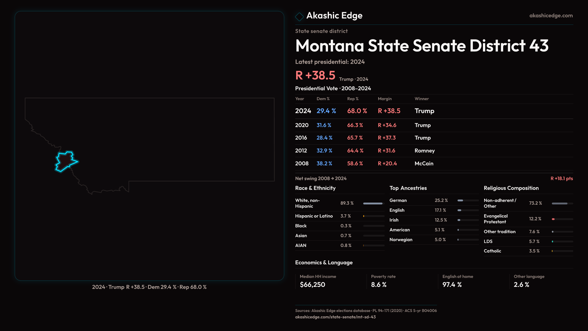 Safe Republican — shifted 3.9pp toward Republicans in 2024 — 22K residents