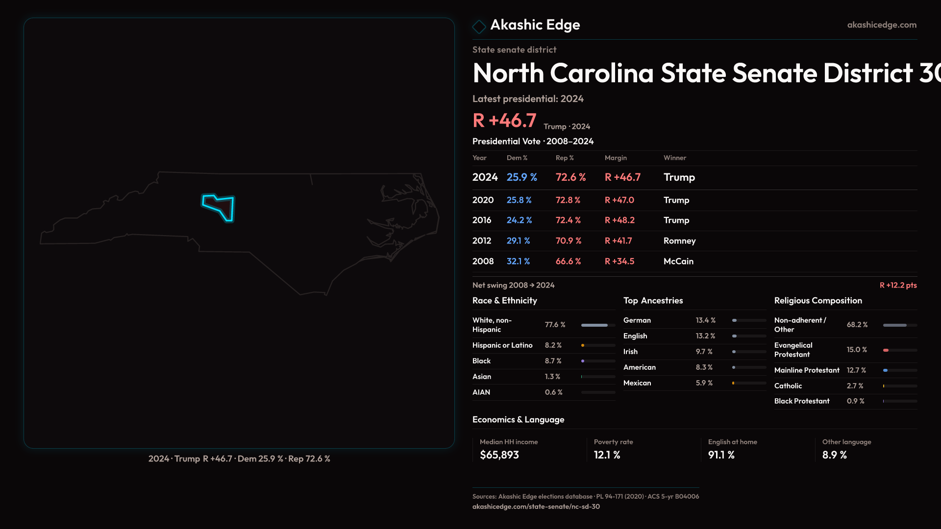 Who lives in North Carolina State Senate District 30? 211,642 residents as of the 2020 Census.