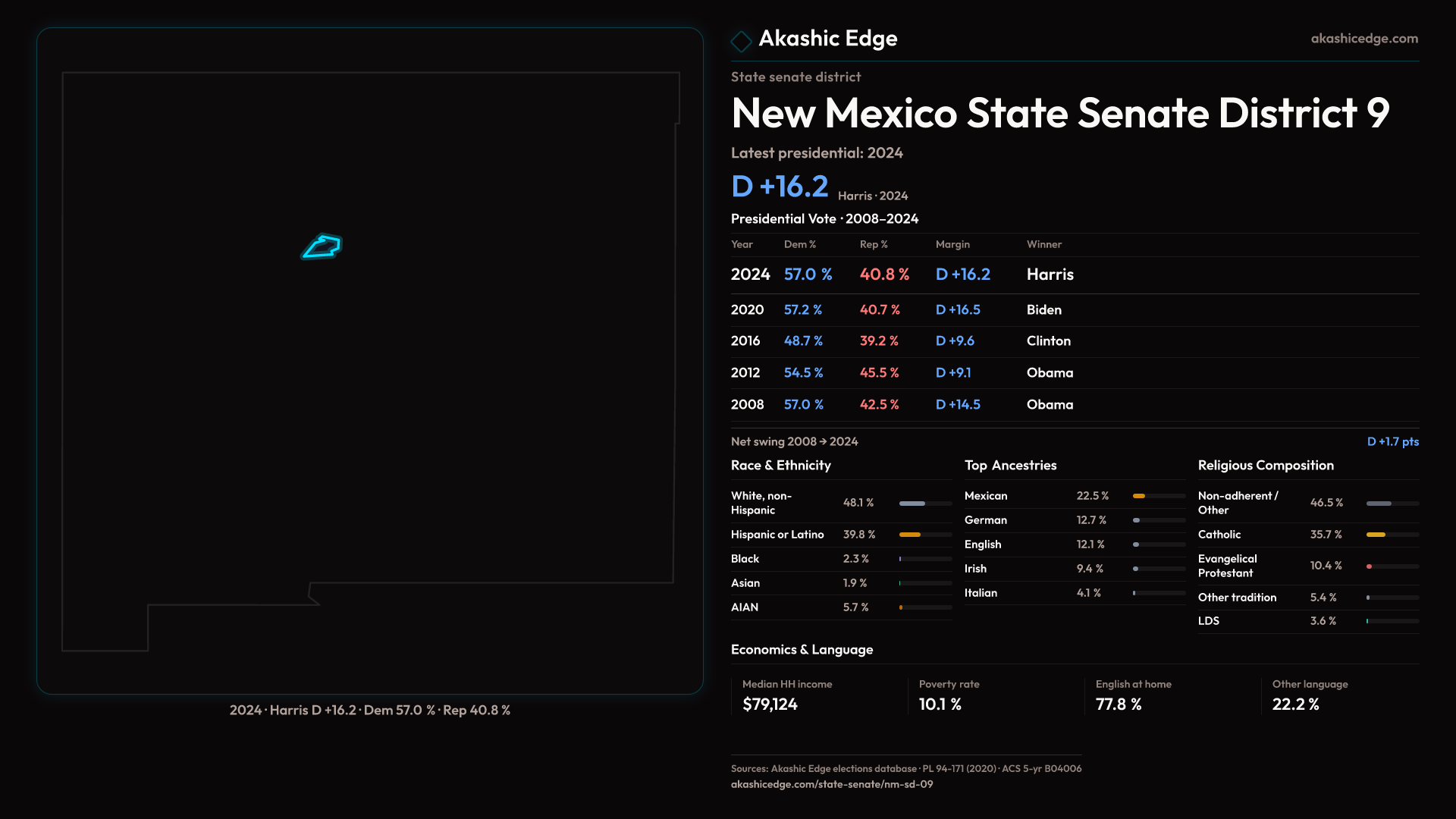 Who lives in New Mexico State Senate District 9? 51,691 residents as of the 2020 Census.