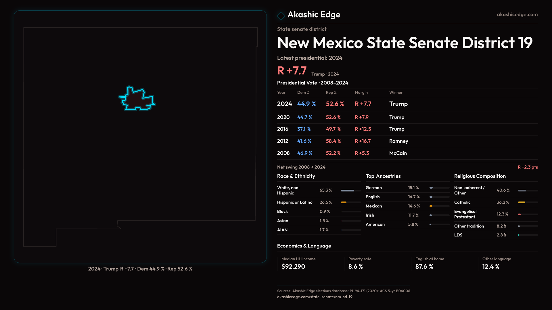 Who lives in New Mexico State Senate District 19? 50,289 residents as of the 2020 Census.