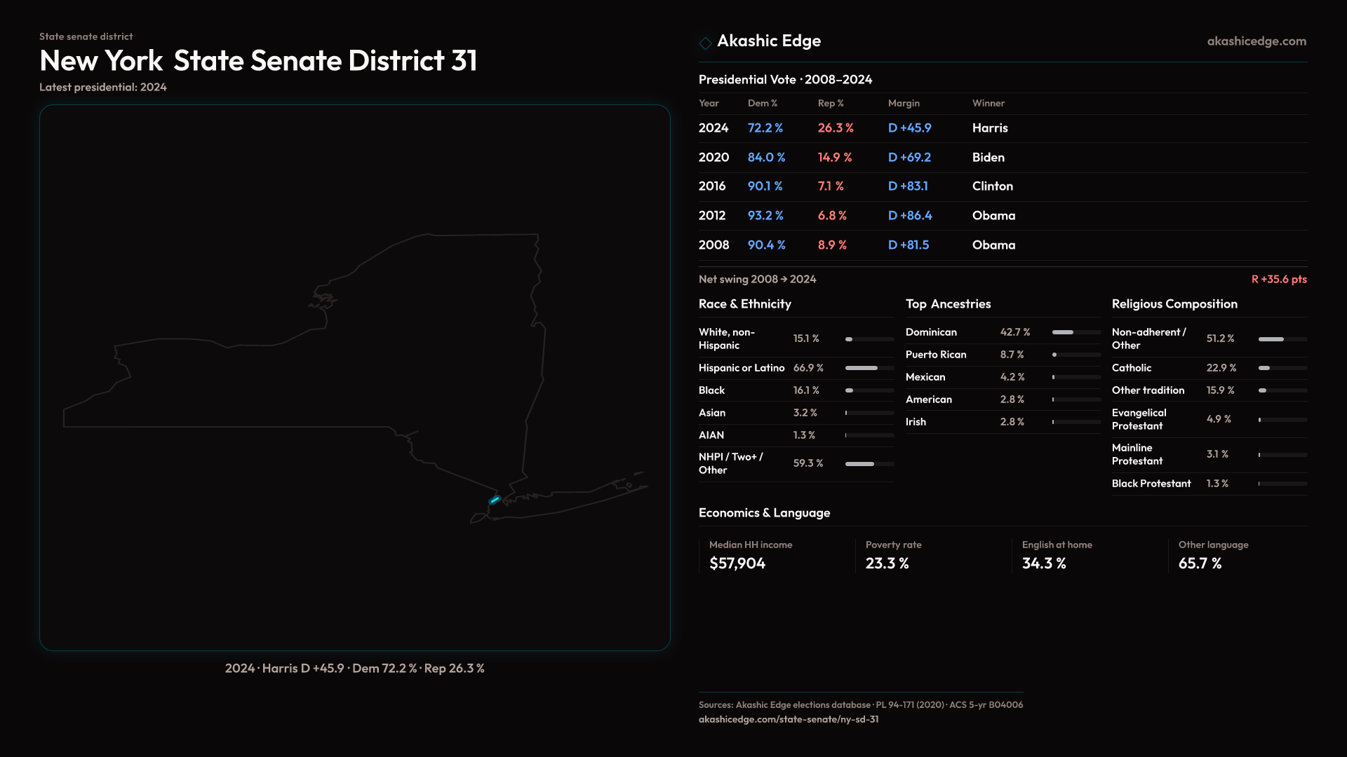 Who lives in New York State Senate District 31? 318,973 residents as of the 2020 Census.