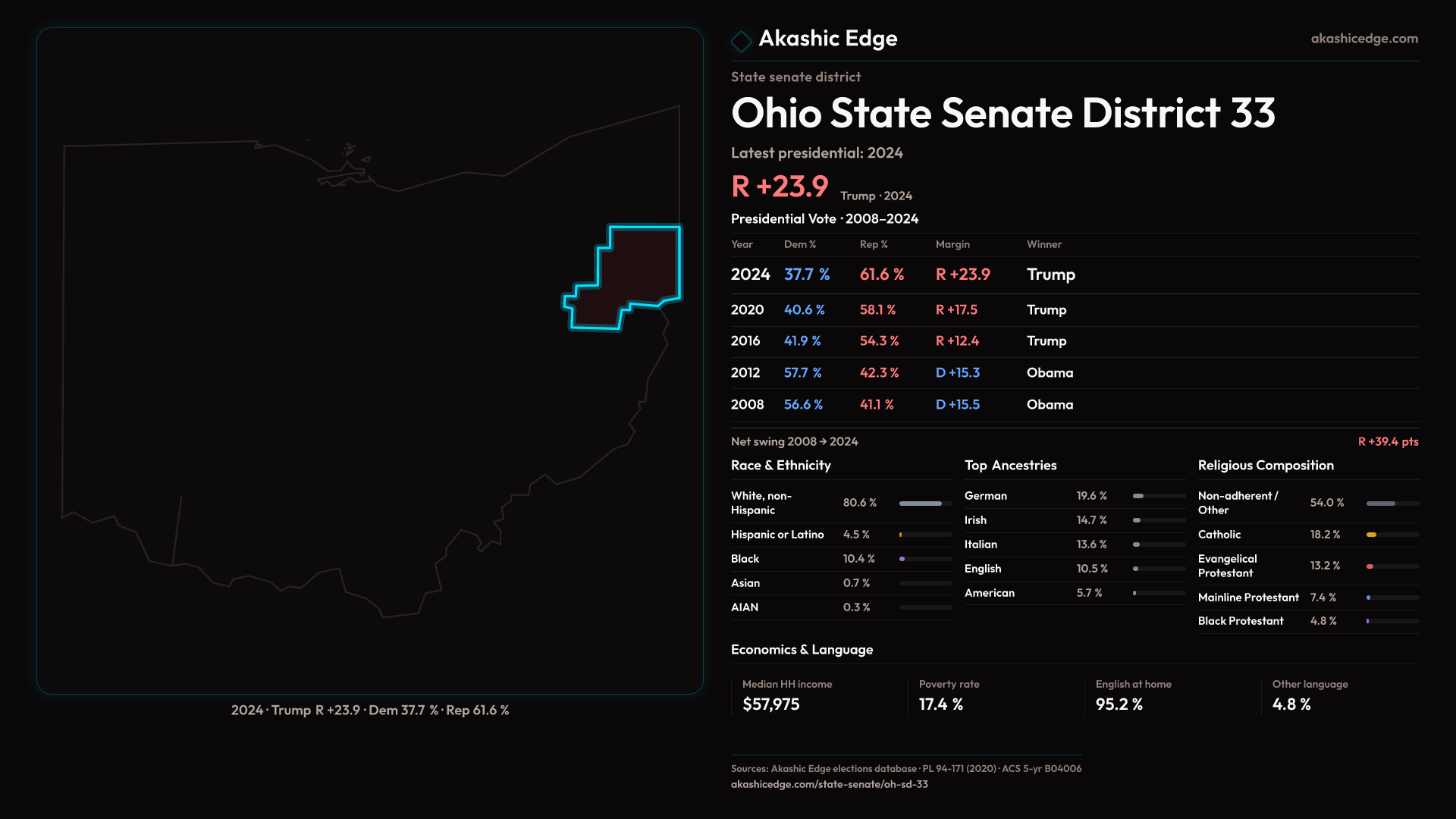 Shifted 6.4pp toward Republicans in 2024 — 357K residents