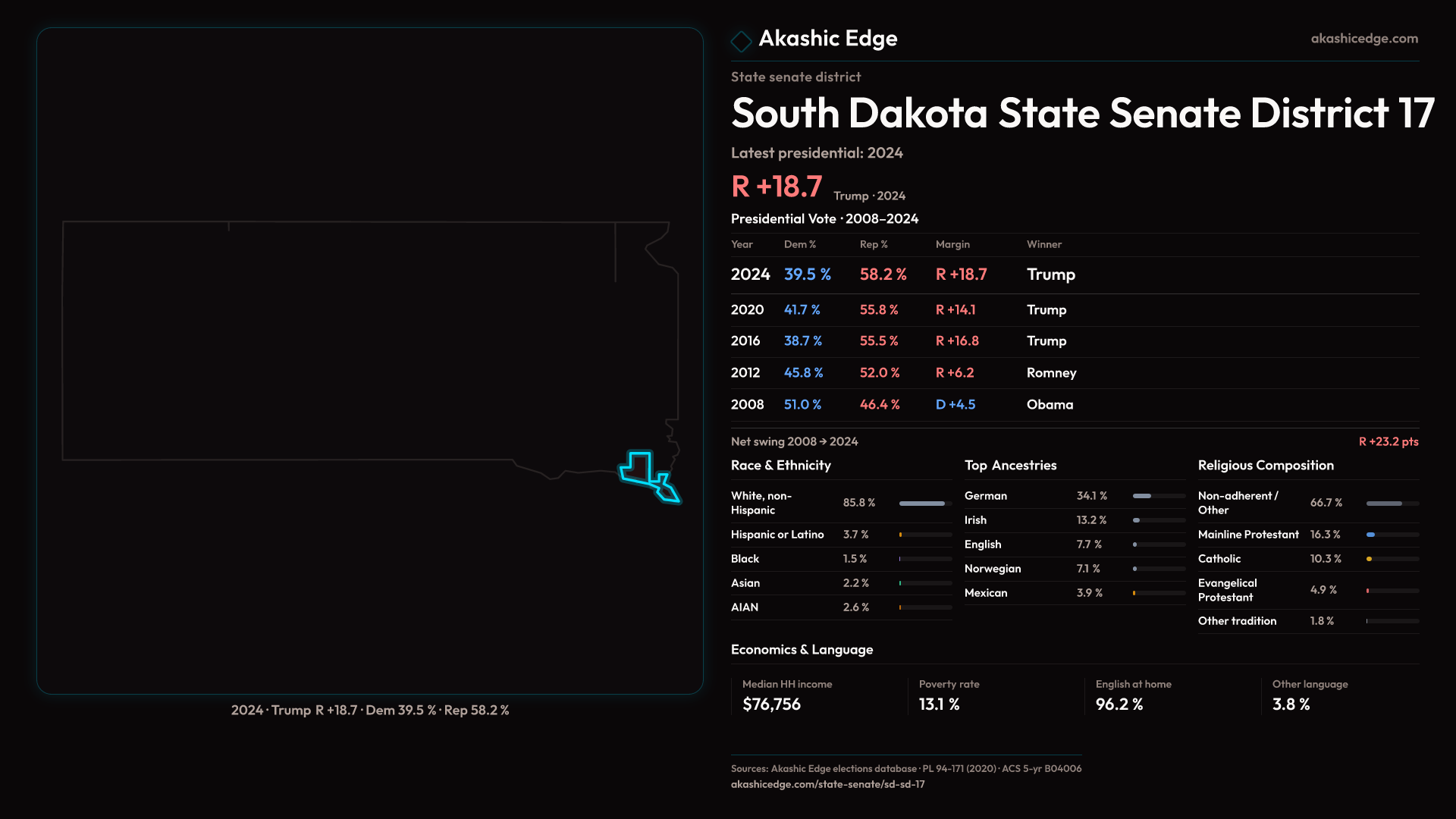 Who lives in South Dakota State Senate District 17? 26,401 residents as of the 2020 Census.