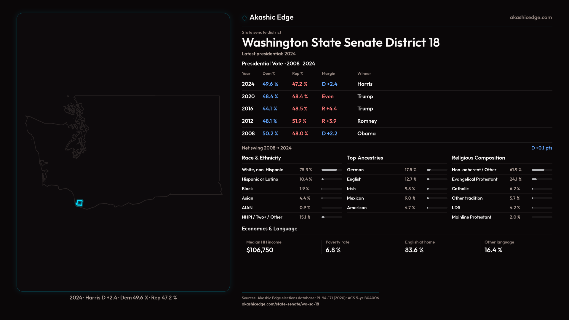 Explore WA-SD-18's political evolution with the Historian